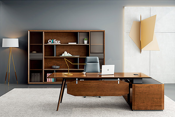 - 现代热销胡桃木材质主管经理办公桌 -小山纹